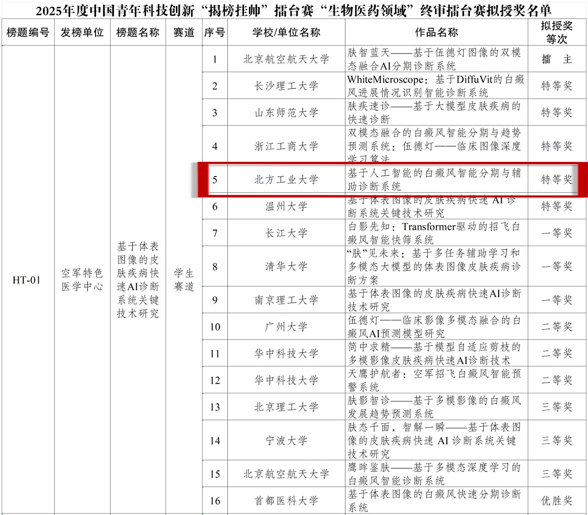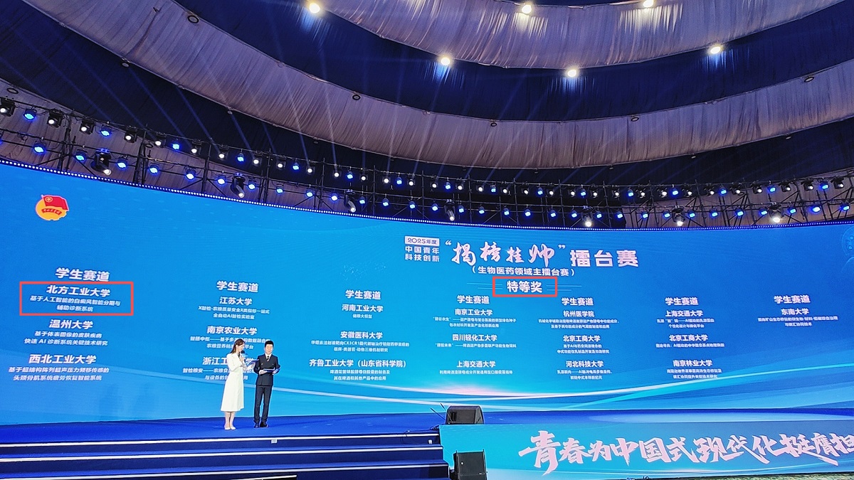 我校在2025年度中国青年科技创新“揭榜挂帅”擂台赛“生物医药领域”终审主擂台赛中勇夺特等奖!这是我校首次在该赛事中斩获此荣誉,实现了历史性突破!