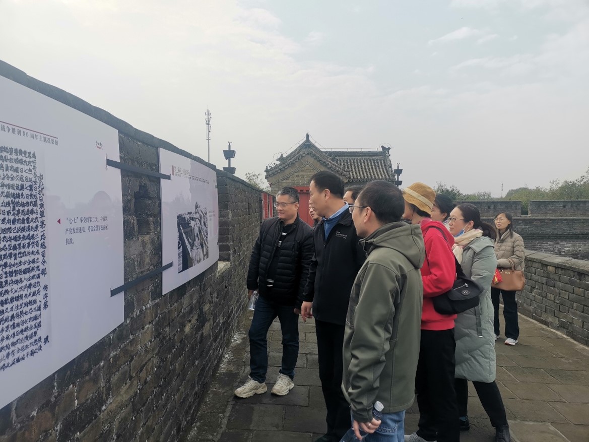 卢沟桥是中华民族全面抗战爆发的标志地,见证了中国人民不屈不挠的抗战历史。中国人民抗日战争纪念馆通过大量珍贵的历史图片、文物实物、场景复原及多媒体展示,全面、系统地再现了中国人民同仇敌忾、共御外侮的壮丽史诗。“城墙上的记忆”通过109幅珍贵历史照片,全景式还原抗战历程,强调中国共产党在抗战中的中流砥柱作用,并融入宛平城作为抗战重要地标的记忆。参观过程中,党员教师认真聆听关于抗日战争全面爆发、伟大胜利以及铭记历史等主题内容的详细讲解,不时驻足凝视,仔细观看展品,深切缅怀革命先烈的丰功伟绩,深刻感悟伟大的抗战精神。